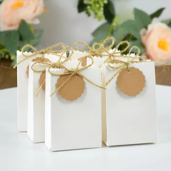 10Pcs White & Brown Gift Bags with Rope Handles and DIY Tag for Weddings & Parties
