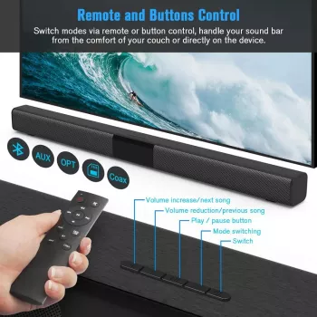 50W Bluetooth 5.0 Soundbar with Subwoofer, 3D Surround Sound for TV and PC