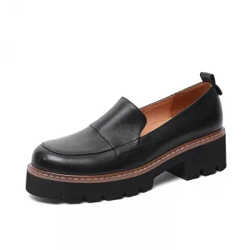 Autumn Genuine Leather Loafers for Women - Round Toe Chunky Heel Pumps