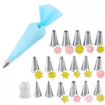 Deluxe 21 PCS Silicone Pastry Bag & Icing Nozzle Cake Decorating Kit
