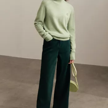 Commuter Half Turtleneck Sweater for Women - Embroidered Loose Knit Top