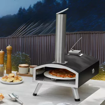 12″ Portable Outdoor Tri-Fuel Pizza Oven with Rotating Stone