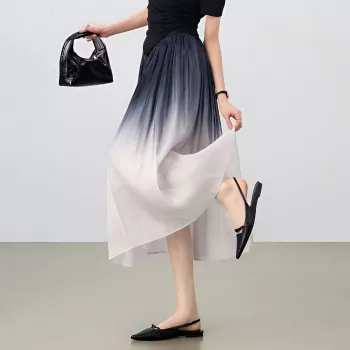 Elegant Gradient A-Line Midi Skirt for Women – Summer High Waist Office Style