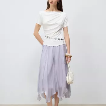 Glossy Irregular A-Line Tulle Skirt for Women