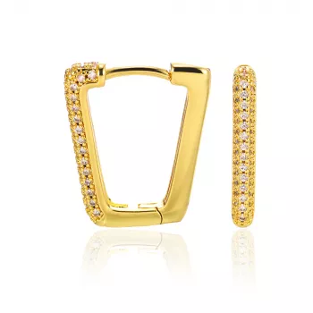 Gold Zircon Square Hoop Earrings for Women – Geometric Stainless Steel Studs