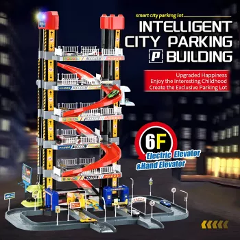 Kids Smart City Parking Lot Toy with 6-Level Track and Car Models