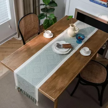 Nordic Geometric Jacquard Table Runner with Tassels – Modern Dining Accent