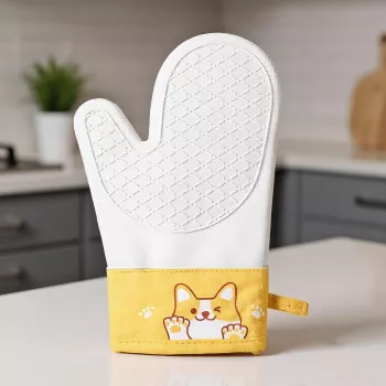 Non-Slip Silicone Oven Mitts with Cotton Liner – Double-Layer Heat Resistant Dog Print Gloves