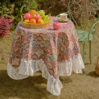 Geometric Lace Ruffled Tablecloth – Elegant Dining Decor