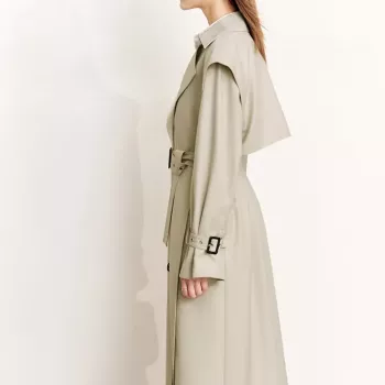 Long Autumn Trench Coat for Women with Turn-Down Collar and Sashes