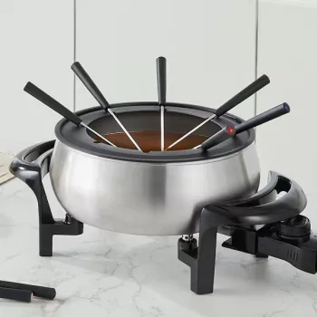 Electric Fondue Pot Set for Cheese & Chocolate with Temperature Control, 3QT Stainless Steel