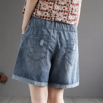 Summer Floral Embroidery High Waist Wide Leg Denim Shorts