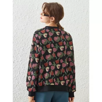 Sweatshirt Retro Floral Print Loose-Fit Pullover - Casual Style