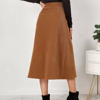 Vintage Corduroy Knee-Length High Waist Button Skirt