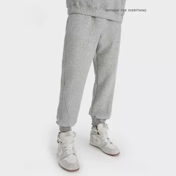 Warm Casual Knitted Joggers Pants for Men and Women - Thick Waffle Knit, Elastic Waist, Midweight