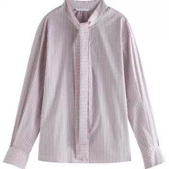 Women's Blue and White Stripe Bow Collar Cotton Long Sleeve Blouse