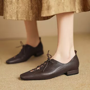 Women’s Genuine Leather Square Toe Lace-Up Loafers with Low Heel