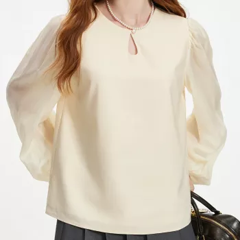 Women’s Lantern Sleeve Hollow Out Blouse Round Neck Long Sleeve Shirt