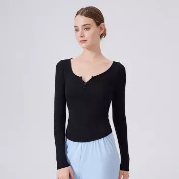 Women's Long Sleeve V-Neck Yoga & Workout Top - Breathable Slim Fit Sportswear