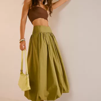 Y2K High Waist Bubble Maxi Skirt with Ruffle Hem