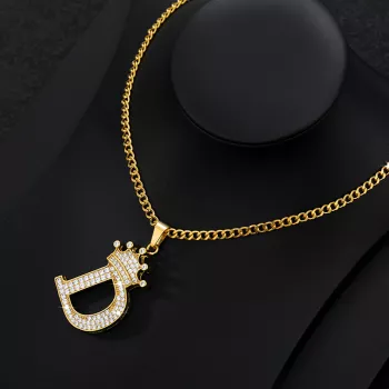 Zircon Crown Initial Letter Necklace for Women & Men